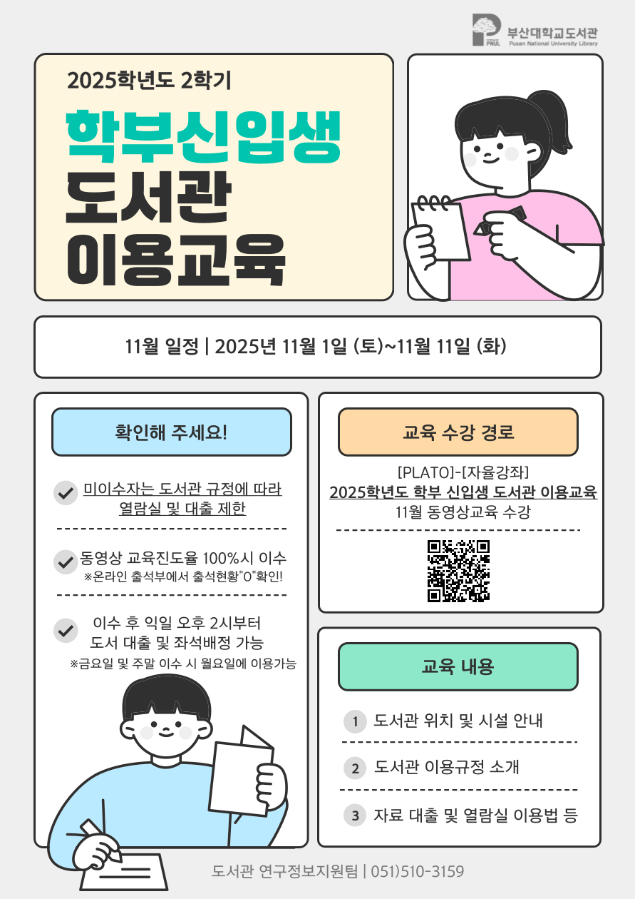 [학부 신입생] 2025학년도 학부 신입생 도서관 이용교육 추가 실시(11월) 안내