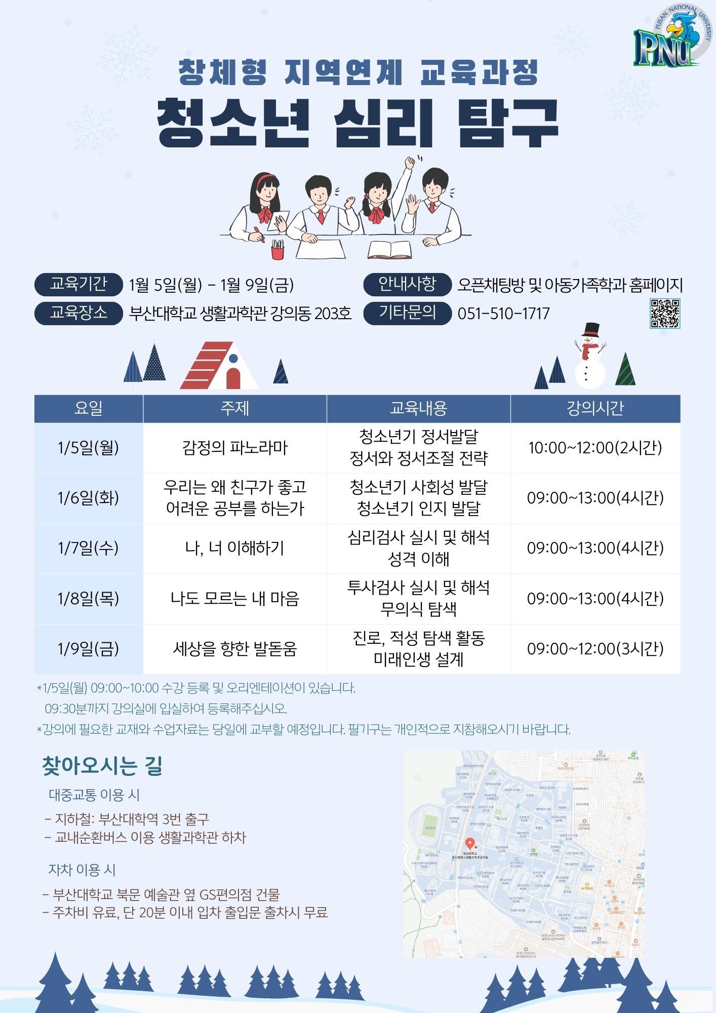[고교] 2025학년도 창체형 지역연계교육과정(겨울학기) 강좌 안내 : 청소년 심리 탐구