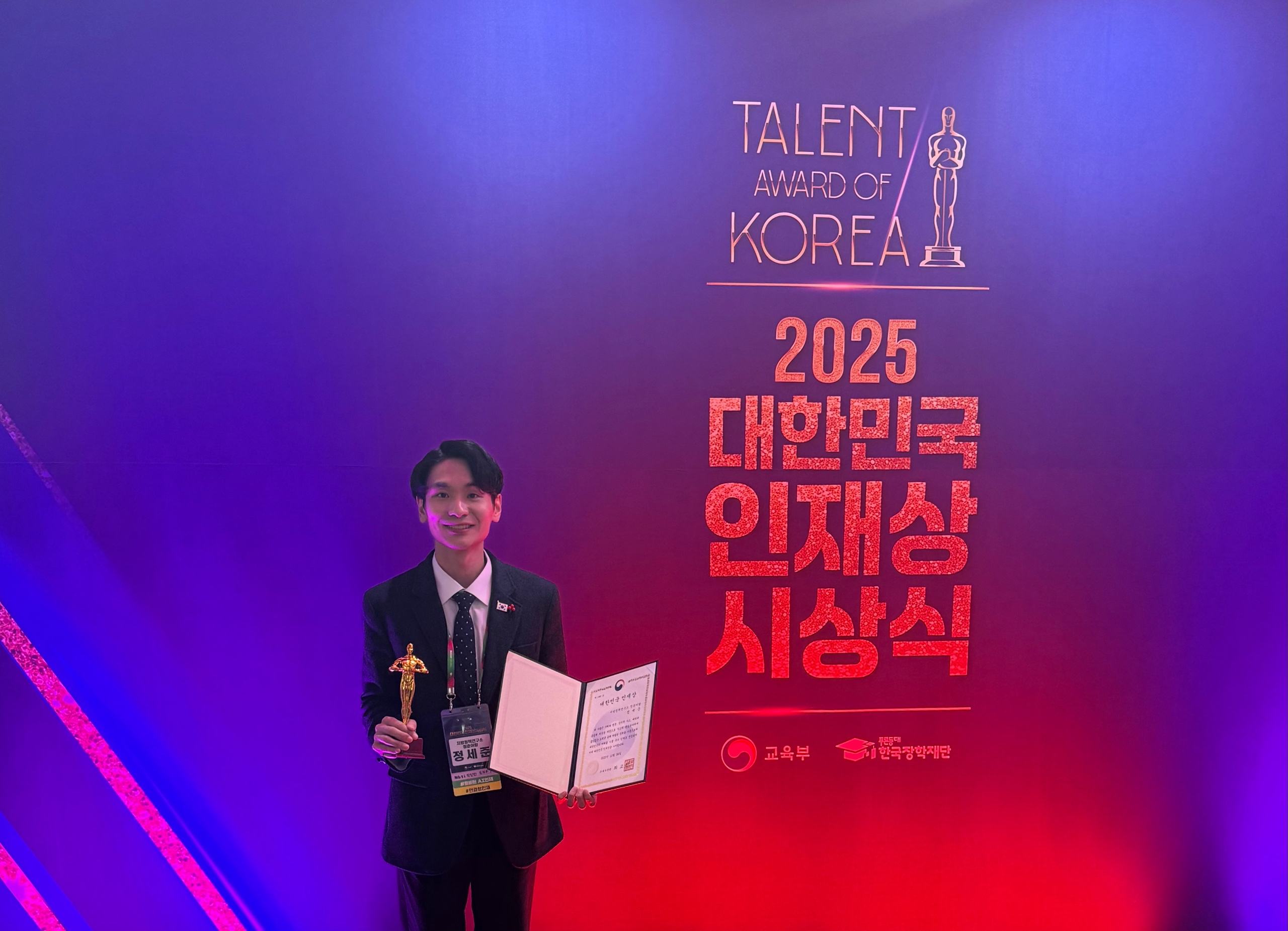 부산대학교 아동가족학과(13학번) 정세준 동문이 2025년 12월 24일, 교육부가 주관하는 ‘대한민국인재상’을 수상하였다.